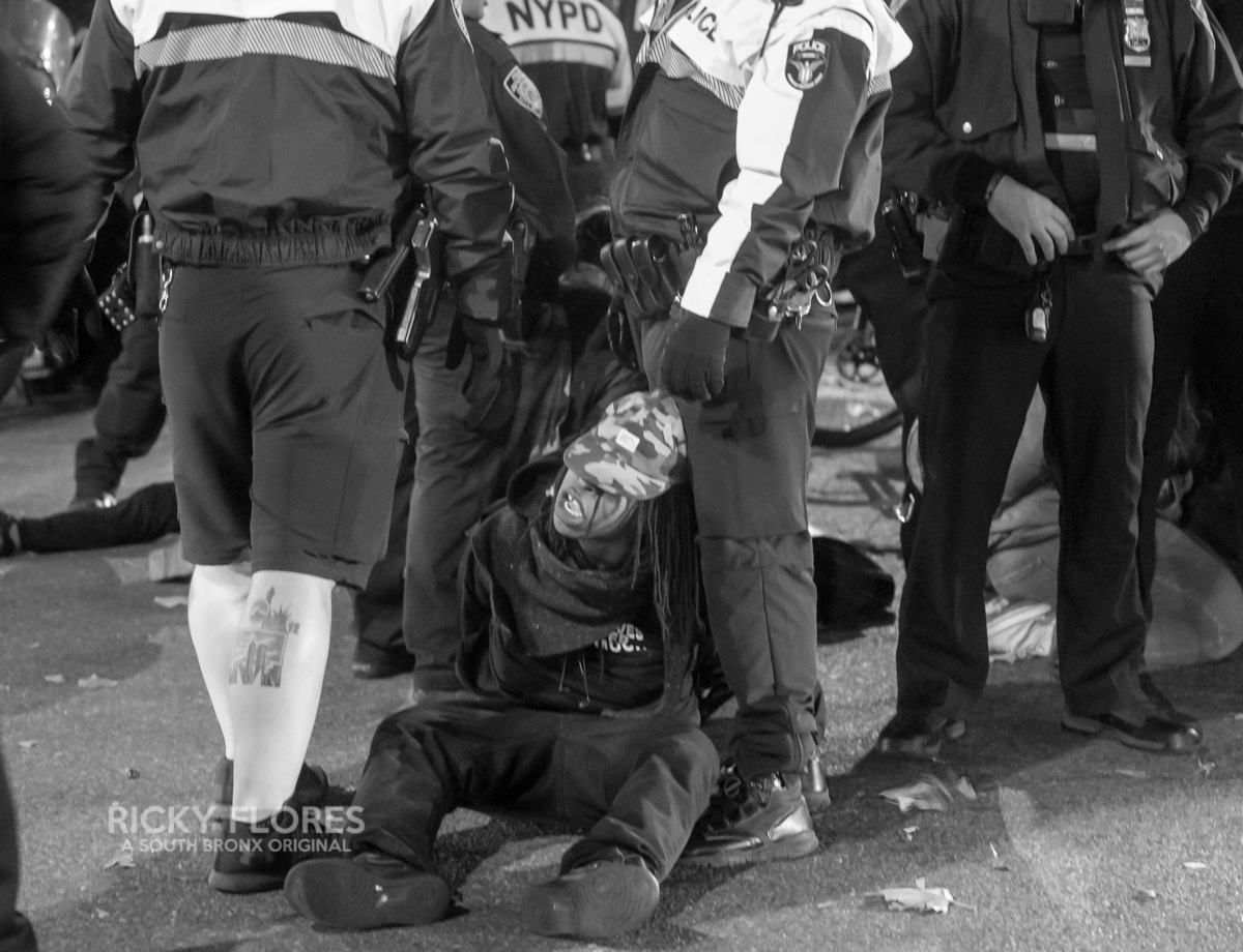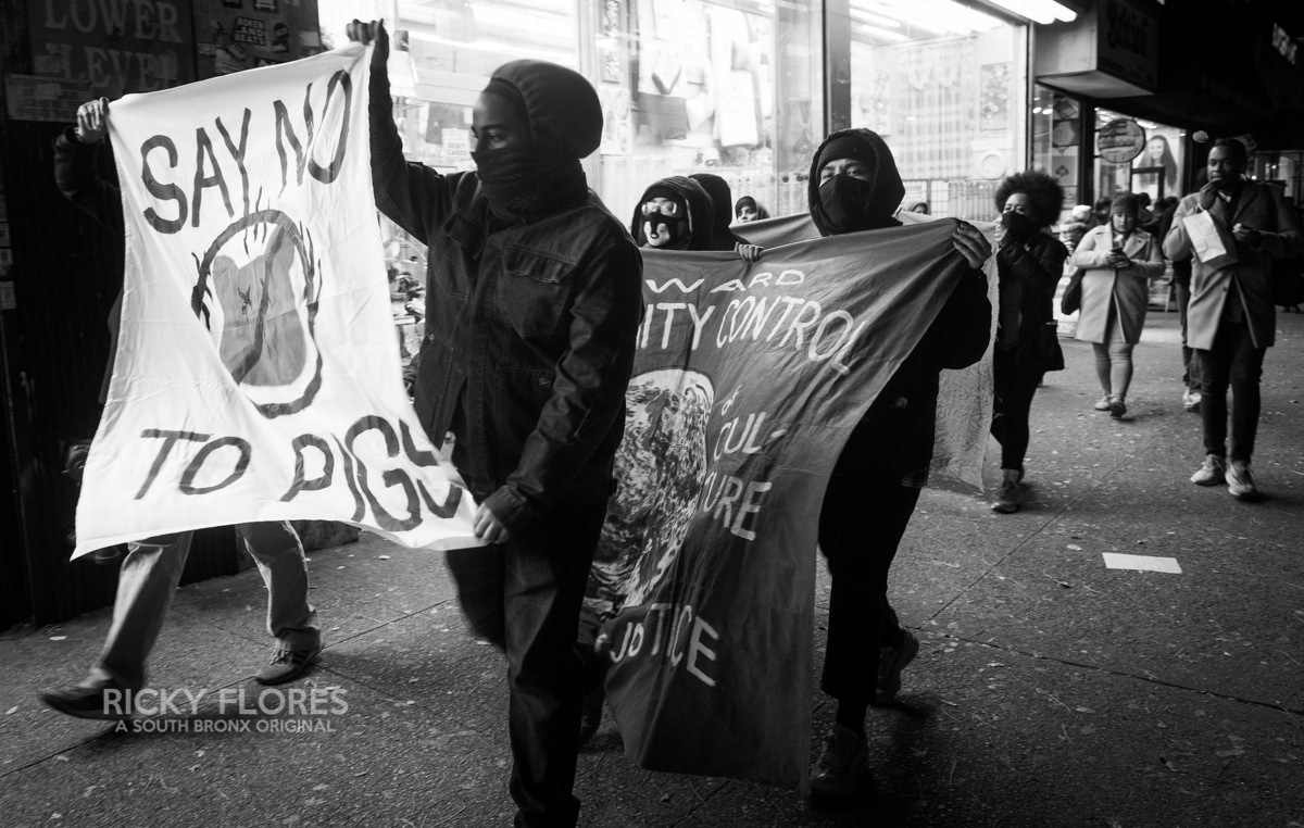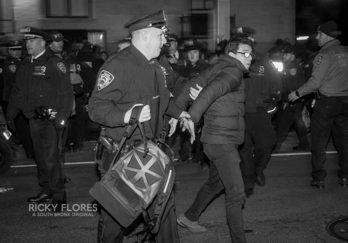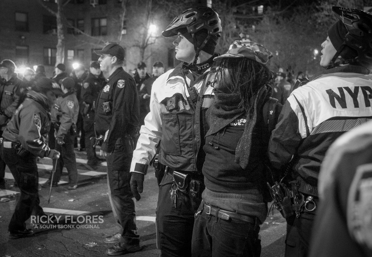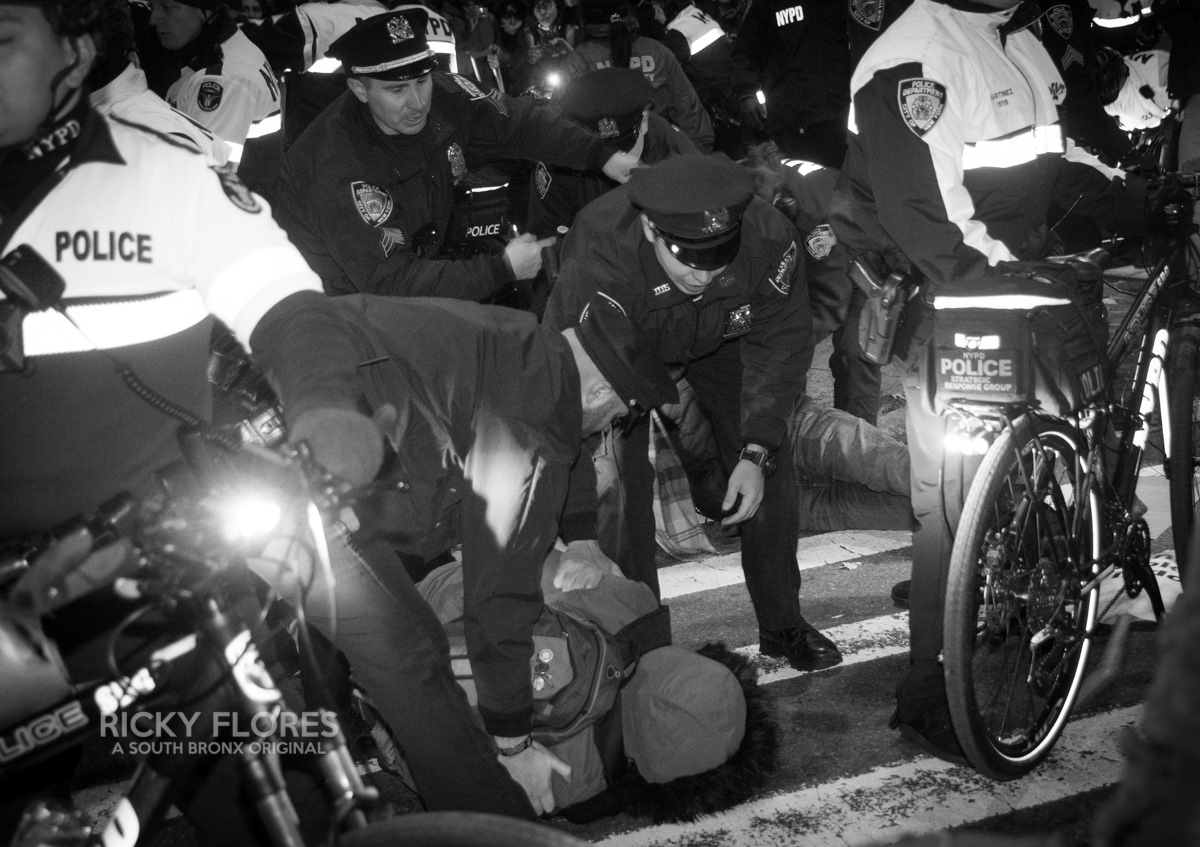 Demonstrators march through Harlem in New York protesting the NYPD after several arrests that caught the public attention as being too violent and excessive. Several arrests were during the protest.