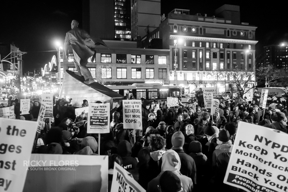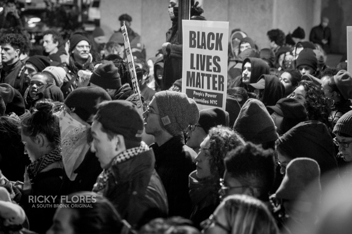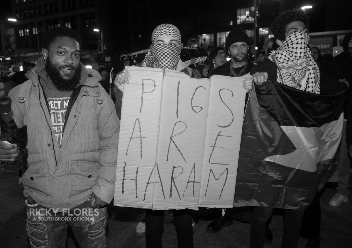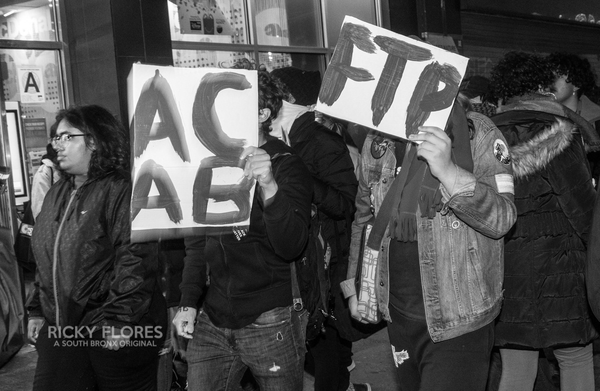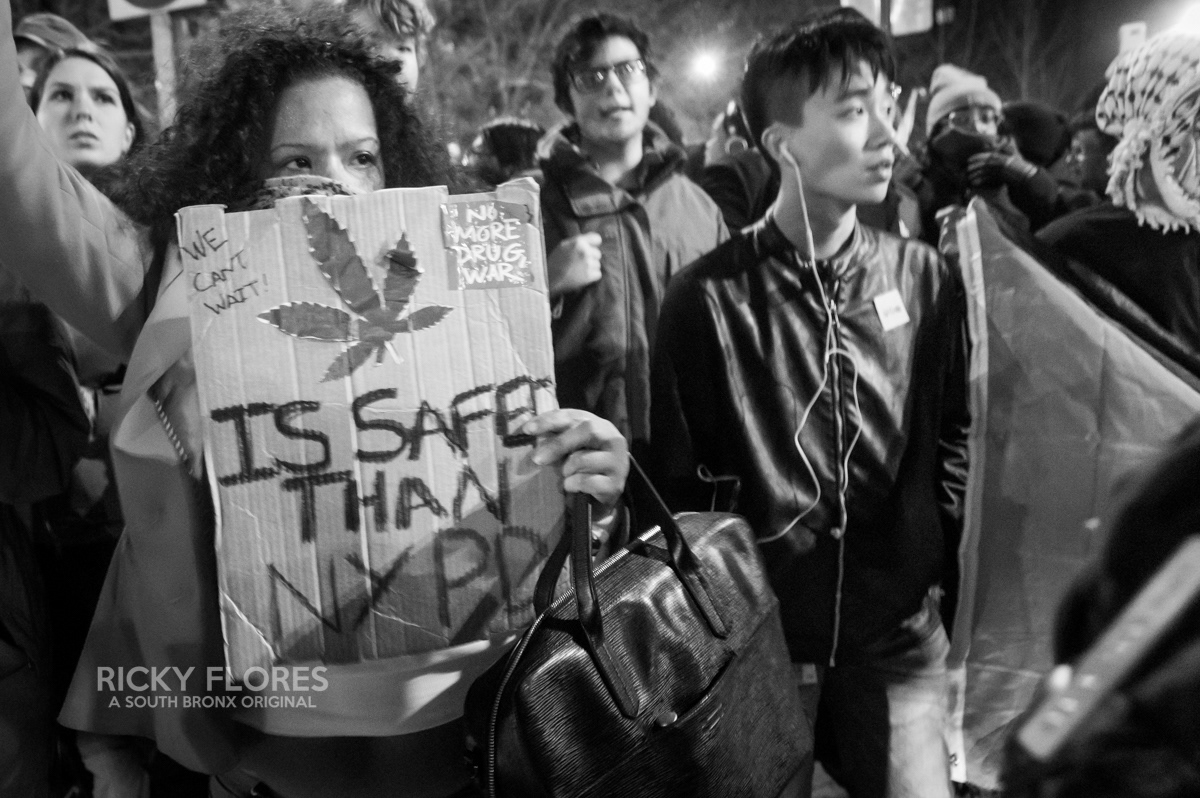 Demonstrators march through Harlem in New York protesting the NYPD after several arrests that caught the public attention as being too violent and excessive. Several arrests were during the protest.