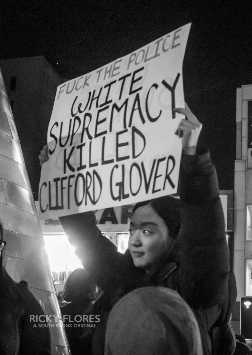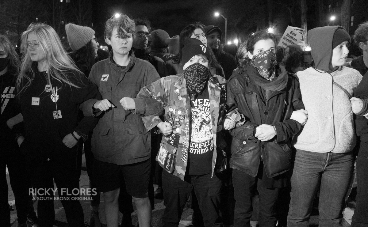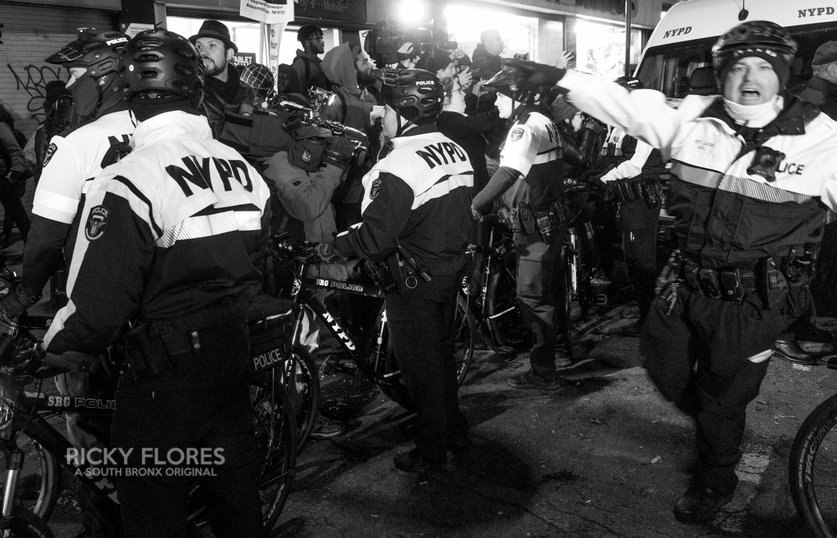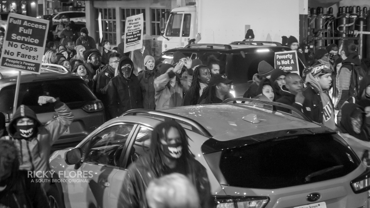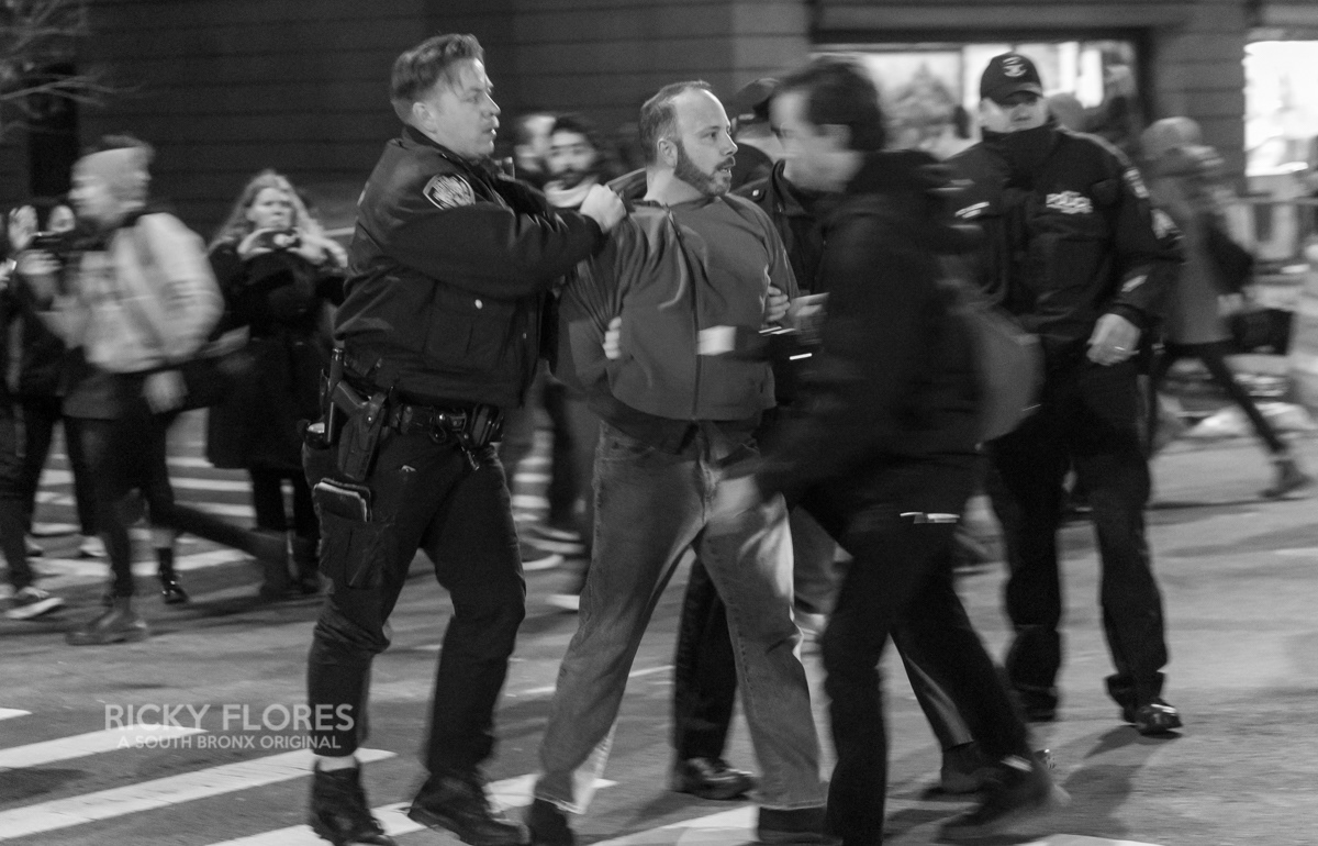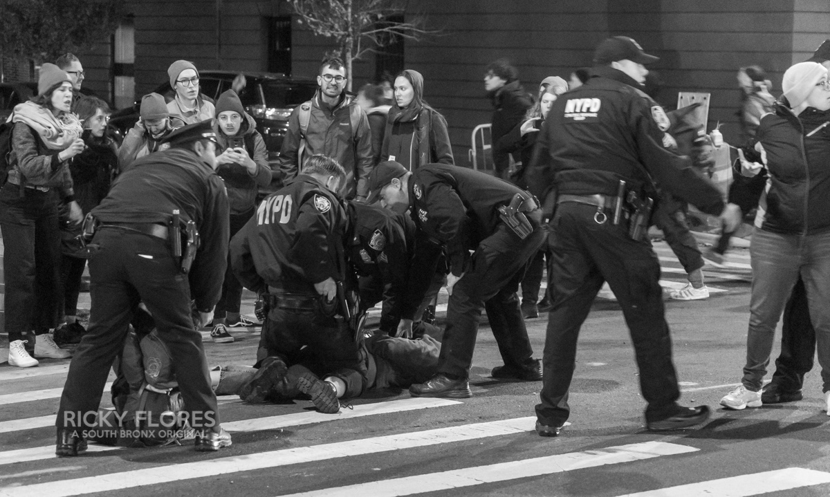 Demonstrators march through Harlem in New York protesting the NYPD after several arrests that caught the public attention as being too violent and excessive. Several arrests were during the protest.